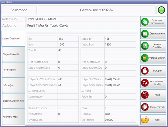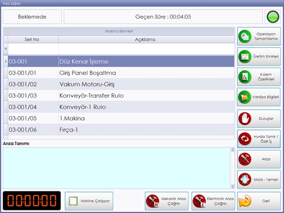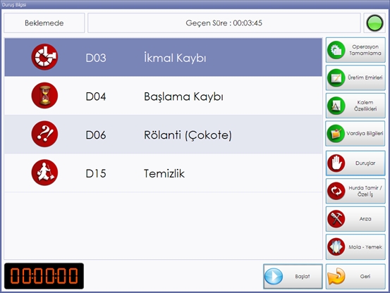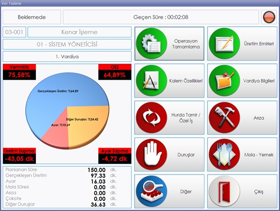 Geliştirilen 2Das Veri Toplama Yazılımı, Üretim Modülü, Duruş Modülü, Arıza Bildirim ve Arıza Bakım Modülü olmak üzere 4 kısımdan oluşmaktadır.